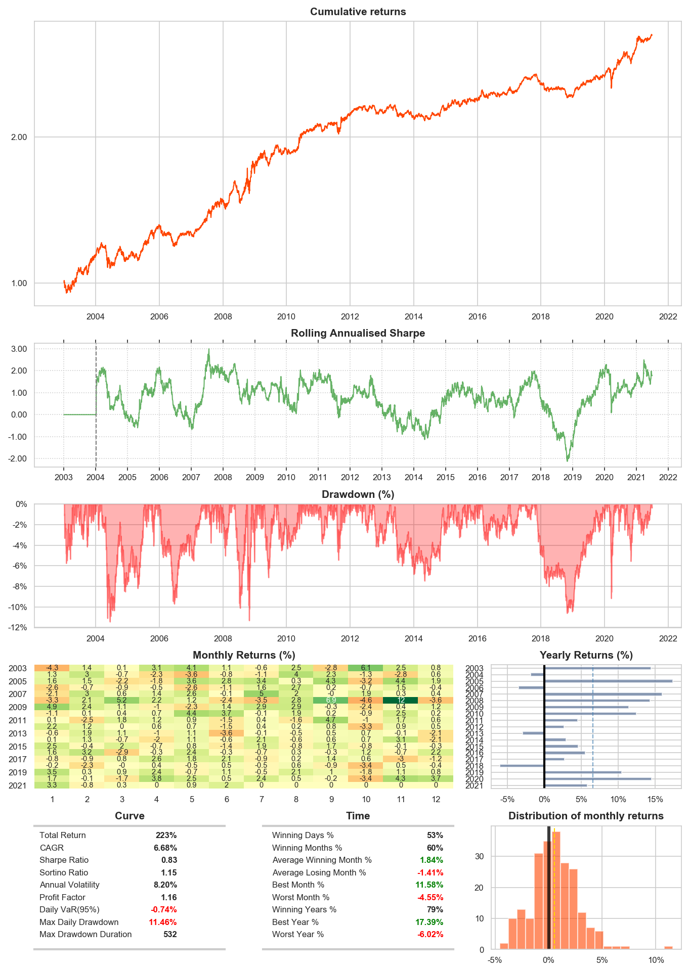 MDD는 11.46%로 낮기 때문에 방어효과가 탁월하다고 볼 수 있다.